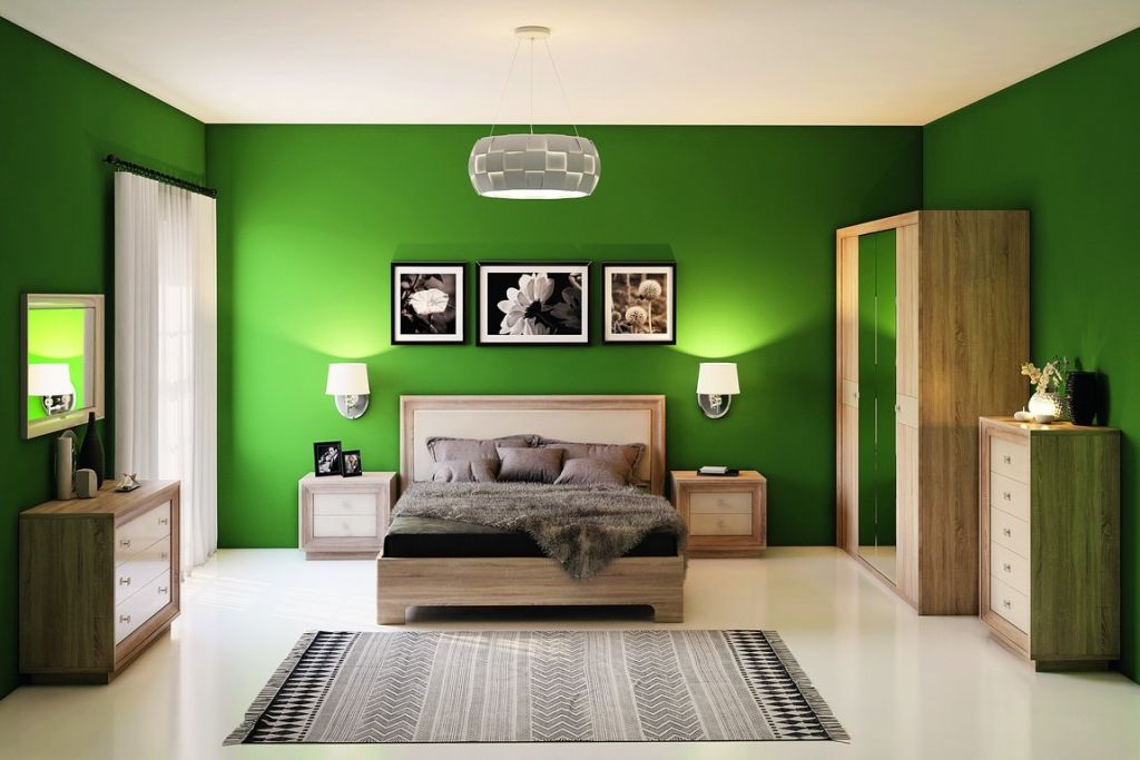 спокойные и приглушенные тона зеленого обладают способностью восстанавливать нервную систему, настраивать на отдых. Такие оттенки — идеальный выбор для спальни. Также их используют в отделке гостиничных номеров и иных помещений, предназначенных для сна;